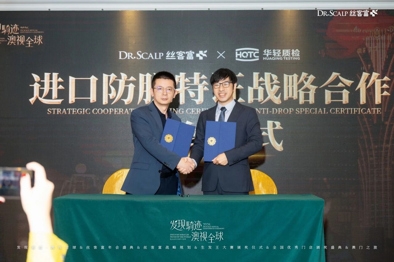 随后,现场迎来重要里程碑——丝客富与广东华轻质量检测中心有限公司正式签署“进口防脱特证战略合作协议,共同推进产品合规备案,为品牌长远发展筑牢根基,赢得全场热烈掌声。